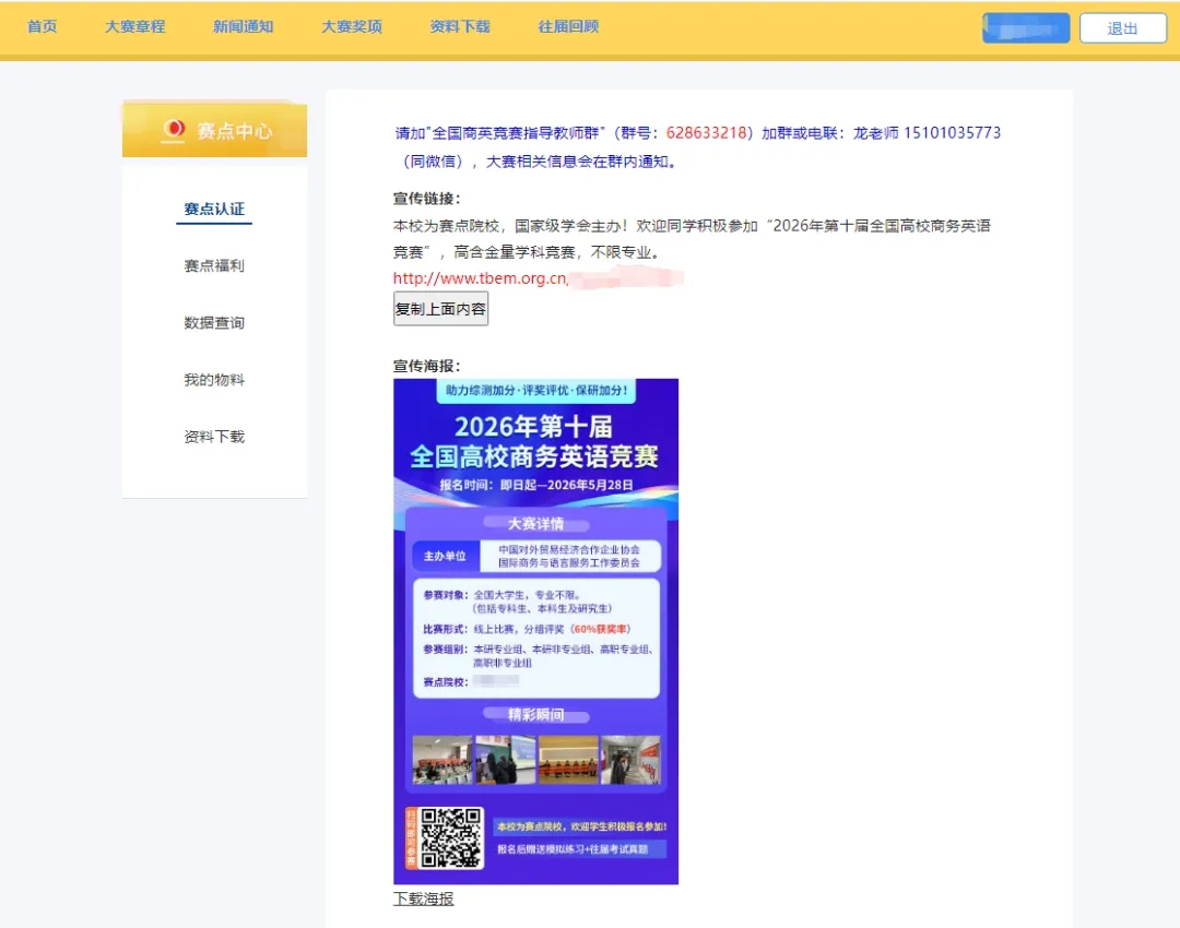 5.若本校已将全国高校商务英语竞赛纳入本校学科竞赛目录,欢迎告知赛点负责老师。将在大赛官网、公众号等融媒体平台发布,若需为比赛申报本校学科竞赛目录,可联系赛点老师提供赛事相关资料。
