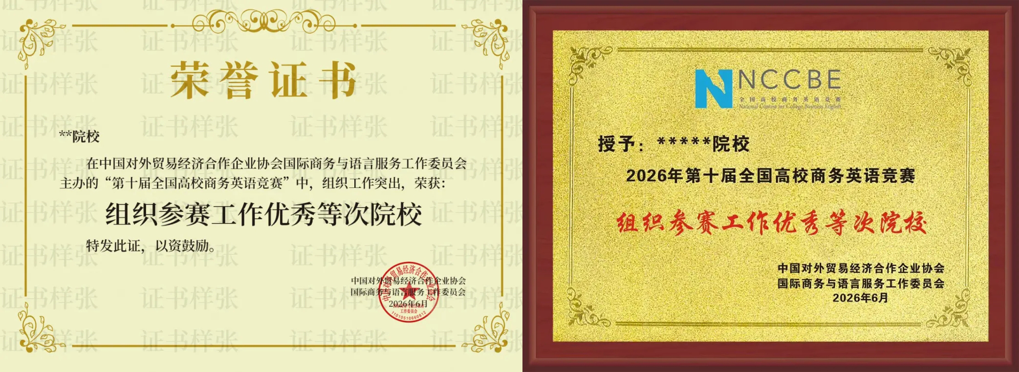 (4)报名人数前10的院校,可获得1本“组织参赛工作优秀等次院校”荣誉证书+6本“优秀指导老师”荣誉证书+6本“优秀志愿者”荣誉证书+定制奖牌;