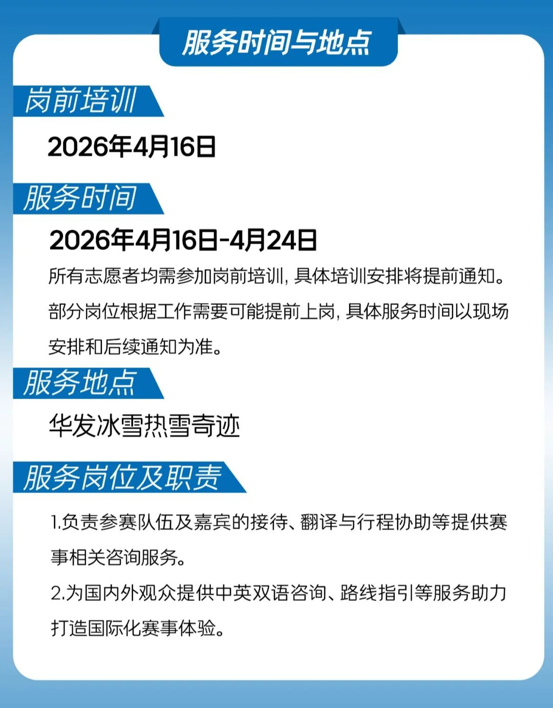 【包三餐+岗前培训+证书+时长+深度滑雪体验】FIS国际滑雪赛志愿者招募!