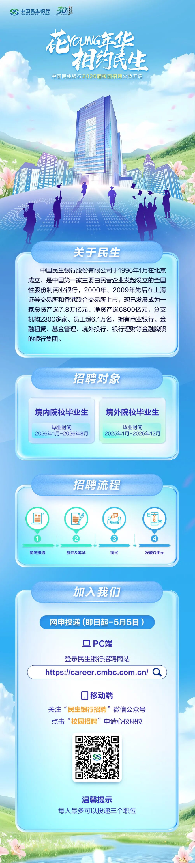 简历投递链接:https://career.cmbc.com.cn/ 本文信息搜集整理自互联网,信息版权及活动解释权归主办单位所有,我爱竞赛网仅作媒体支持。 请仔细看正文,正文里有报名办法,或者报名官网。