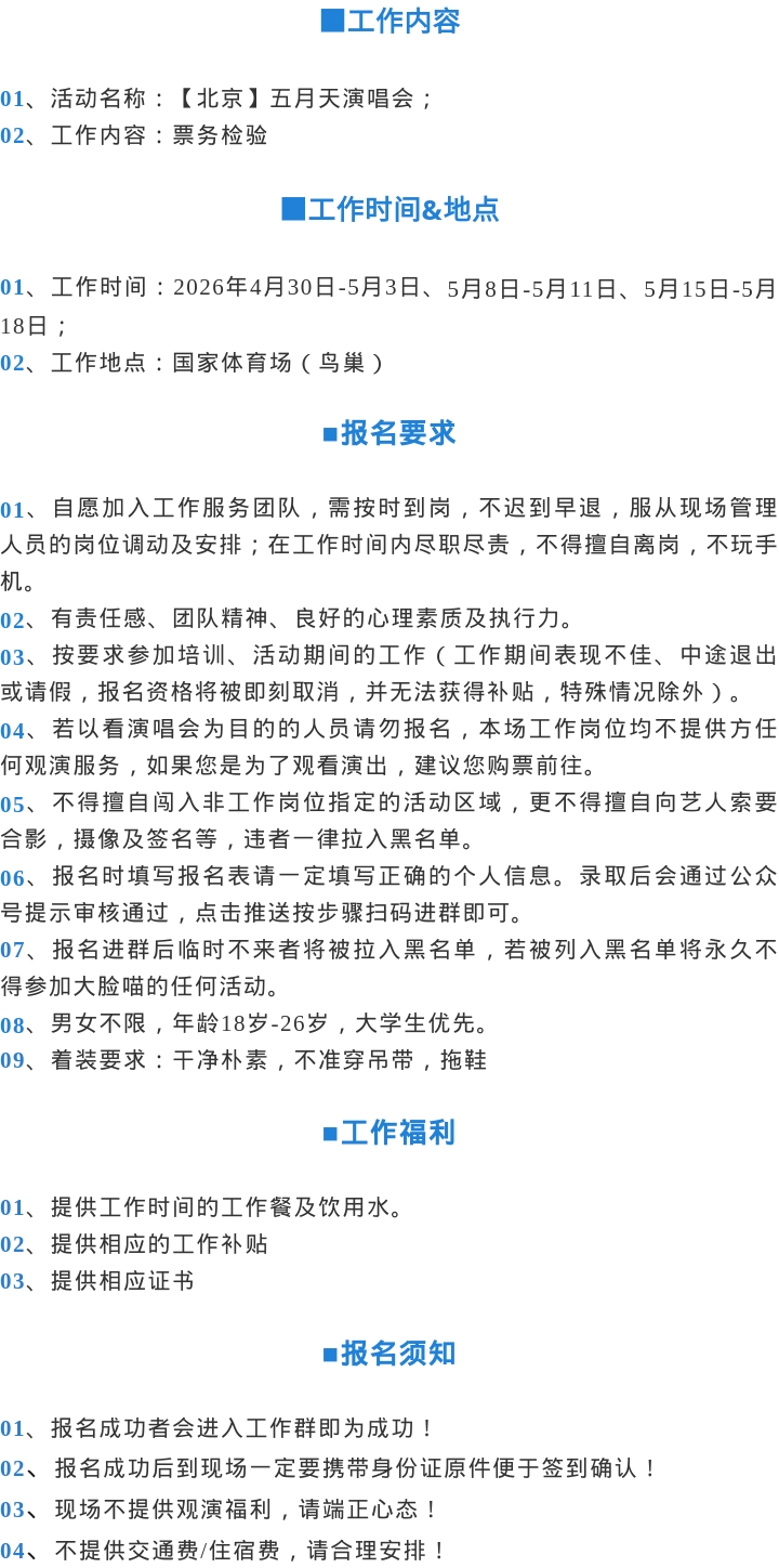 摘要: 【餐饮+补贴+证书】五月天演唱会志愿者招募!