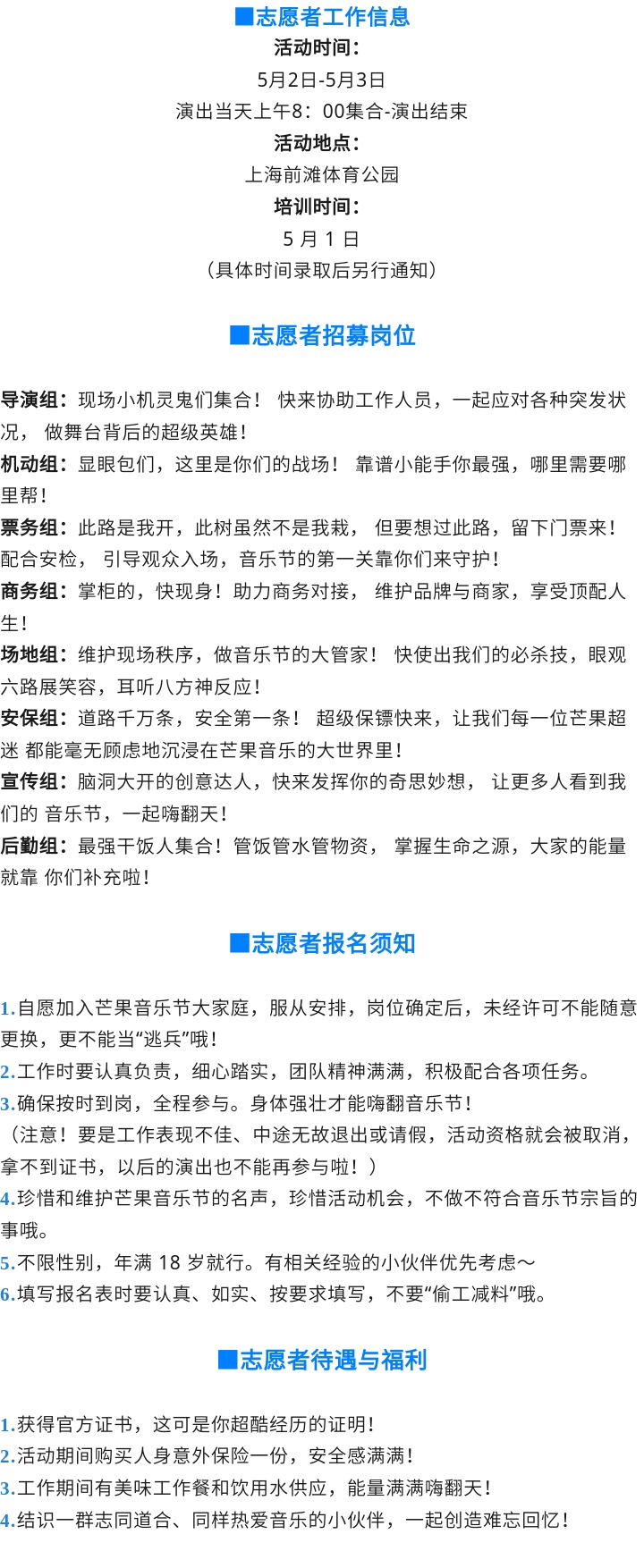 2026(上海)超级芒果音乐节志愿者招募