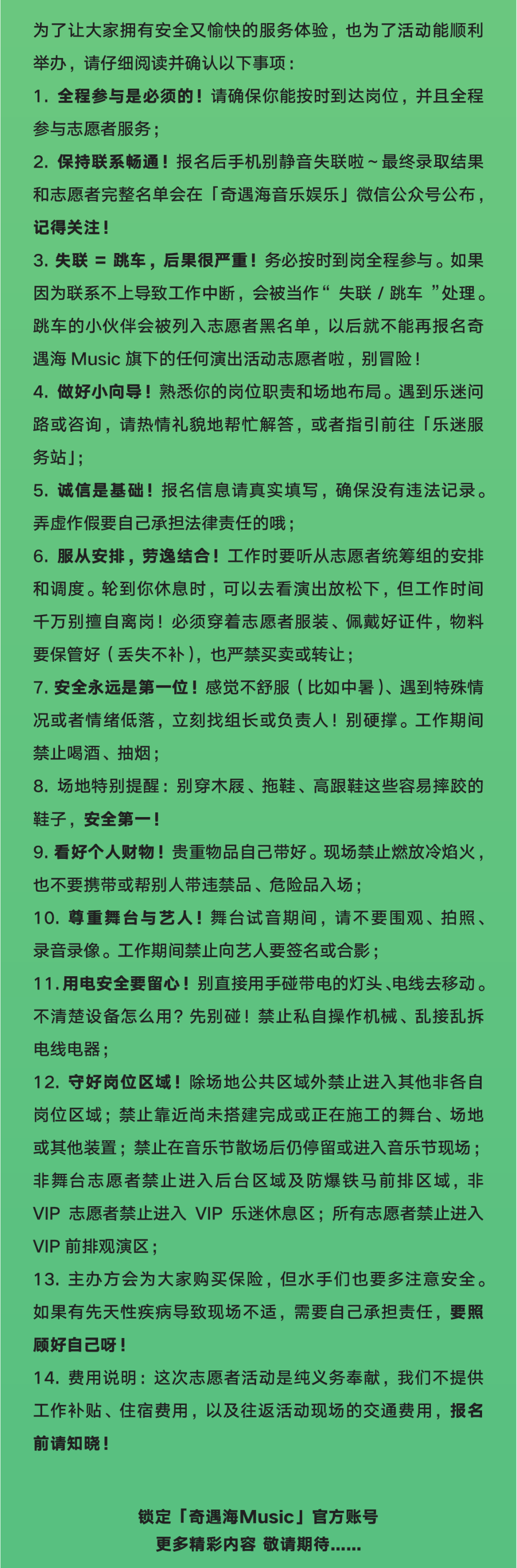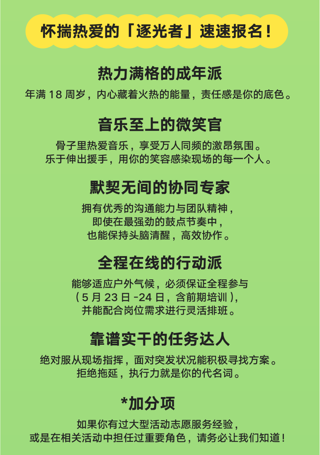 摘要: 【可观演+餐饮+证书+周边 | 周深/张峻豪/张子墨/颜人中/黄誉博/石凯/张碧晨…】大眼音乐节志愿者招募