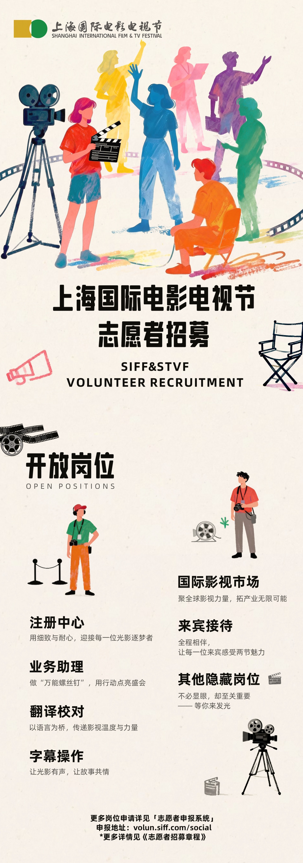 2026上海国际电影电视节志愿者招募 扫码关注公众号“大学生志愿者信息” 后台回复“653”进行报名 2026年上海国际电影电视节将于6月在上海举行。其中,第28届上海国际电影节举办时间为6月12日至21日,第31届上海电视节举办时间为6月22日至26日。 即日起,上海国际电影电视节面向全社会招募志愿者,欢迎有意参与两节志愿服务的各界优秀人士报名,发扬志愿者精神,担纲“上海文化”和“上海服务”品牌的践行者,也让自己收获一份终身难忘的两节记忆。 当黄浦江的晚风, 拂过银幕和荧屏里的光影, 当世界影视人的目光汇聚申城, 一场跨越山海的文化之约, 正等待一群热忱的追光者共赴。 上海国际电影电视节, 以光影为桥, 连接中国与世界, 而每一束星光的璀璨, 每一次盛会的圆满, 都离不开一群人的默默守护 ——无私奉献的幕后志愿者。 你—— 就是我们一直在找寻的追光者, 更是这场文化盛宴中不可或缺的那抹亮色。 你不必是专业的影视从业者, 不必有耀眼的履历加持, 只要你心怀热爱、乐于奉献, 愿意在付出中收获成长, 这里就有属于你的舞台。 如果你刚好有兴趣, 又刚好有时间, 那千万不要错过这场光影之约! 志愿之力,终将不虚此行: 1. 收获含金量耀眼的志愿者证书 2. 获得具有纪念意义的志愿者服装 3. 获得国际化平台的专业实践经验 4. 近距离向全球影视大咖学习的宝贵机会 5. 结识良师益友留下独特又难忘的团组体验 今年六月, 与你“沪”动,等你发光。 “小影子”、“小柿子”们, 期待与你们相遇在两节! 扫码关注公众号“大学生志愿者信息” 后台回复“653”进行报名 本文信息搜集整理自互联网,信息版权及活动解释权归主办单位所有,我爱竞赛网仅作媒体支持。 请仔细看正文,正文里有报名办法,或者报名官网。
