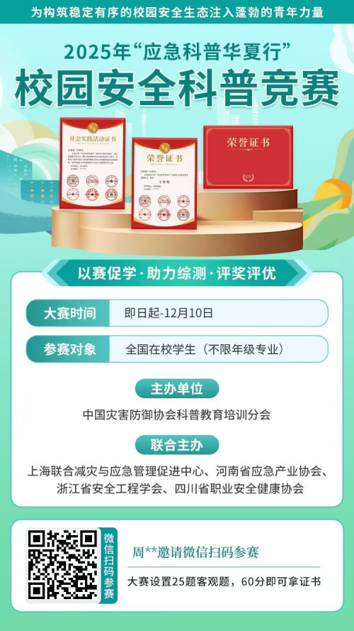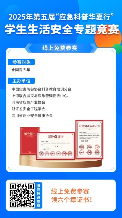 2025年第五届“应急科普华夏行” 学生生活安全专题竞赛 答题领6个章证书!