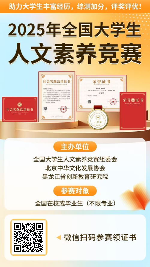 2025年全国大学生人文素养竞赛 免费参赛,60分即可领取获奖证书、社会实践证书