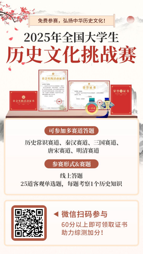 2025年全国大学生历史文化挑战赛 助力综测,免费参赛拿证书