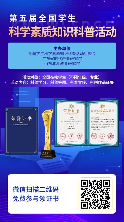 第五届全国学生科学素质知识科普活动 免费答题,及格领证书