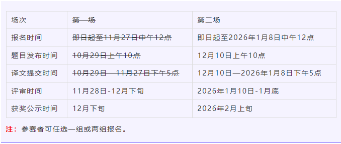 2.为避免网站服务器过载卡顿,请参赛者尽量提前各场次结束前两个小时上传译文。