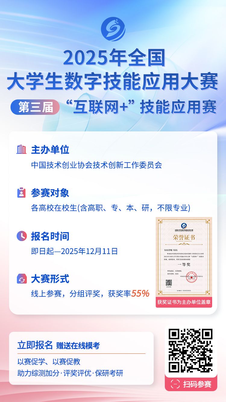 【志愿者招募】2025年全国大学生数字技能应用大赛第三届“互联网+”技能应用赛