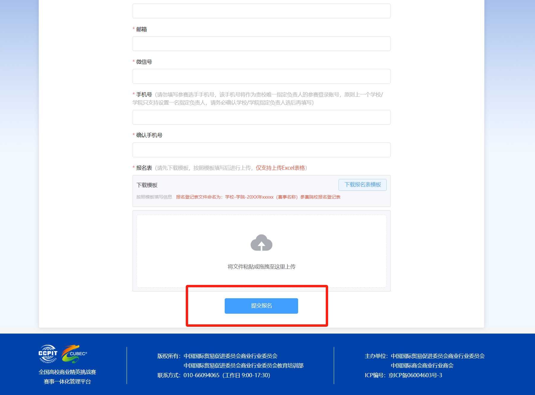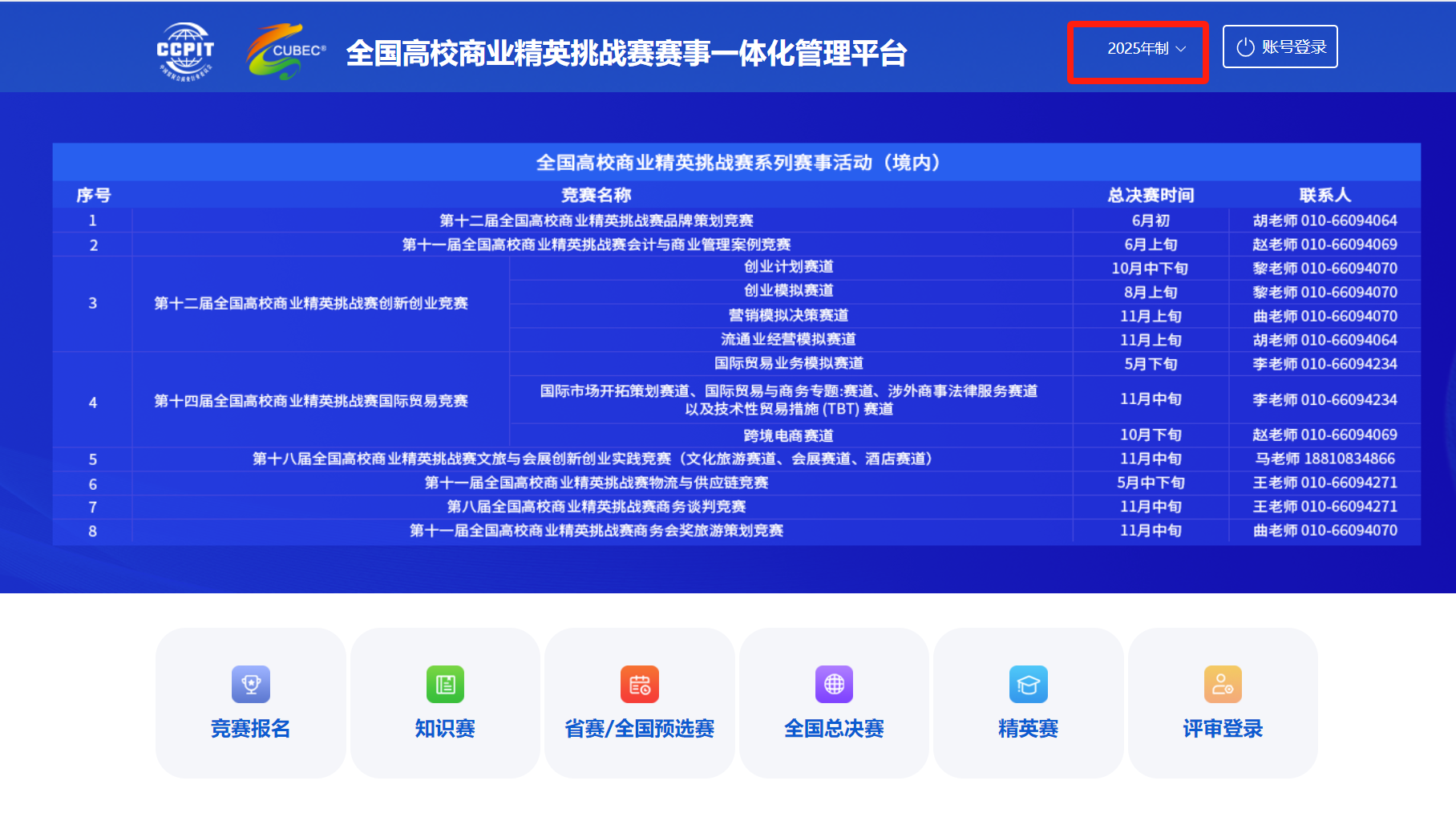 2026年3月25日前,参赛院校负责教师登录全国高校商业精英挑战赛赛事一体化平台,选择【2026年赛制】完成报名登记,访问地址(http://ssyth.cubec.org.cn),同时可扫描下方二维码进入赛事一体化平台。