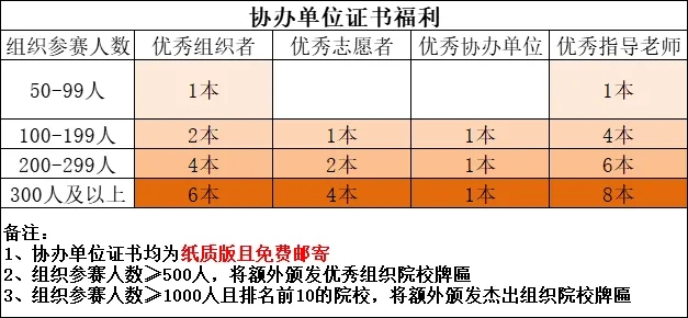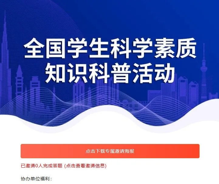 为进一步扩大科学素质相关知识的公众传播,活动举办方倡导 学生会及社团组织加入协办单位队伍,让更多的学生了解并学习科学素质知识。凡积极宣传本次活动且组织一定数量的学生参与,均可获得优秀指导老师、优秀组织者、荣誉牌匾等福利。