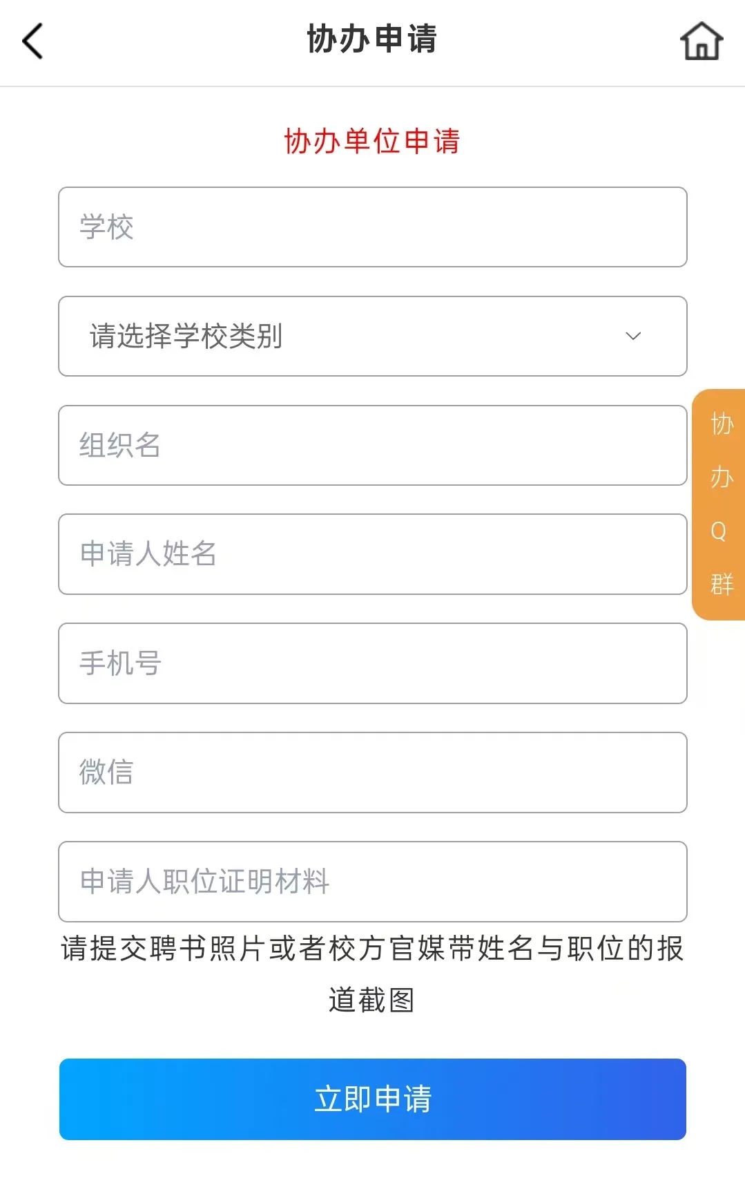 第二步:填写协办单位信息,并提交申请等待审核。