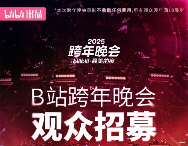 B站2025跨年晚会录制现场观众招募! 报名截止时间:2025年11月14日 关注“大学生志愿者信息” 回复“518”即可报名 2025最美的夜跨年晚会 观众招募正式启动 一起嗨翻全场! 灯光亮起的那一刻 每一份热爱都值得被看见! 经典影视与动画、热门游戏 还有全球顶尖阵容! 欢迎所有朋友 奔赴这场年度限定的现场盛宴! 12月上旬苏州录制 「2025最美的夜bilibili跨年晚会」 现场等你来一起狂欢! 本文信息搜集整理自互联网,信息版权及活动解释权归主办单位所有,我爱竞赛网仅作媒体支持。 请仔细看正文,正文里有报名办法,或者报名官网。