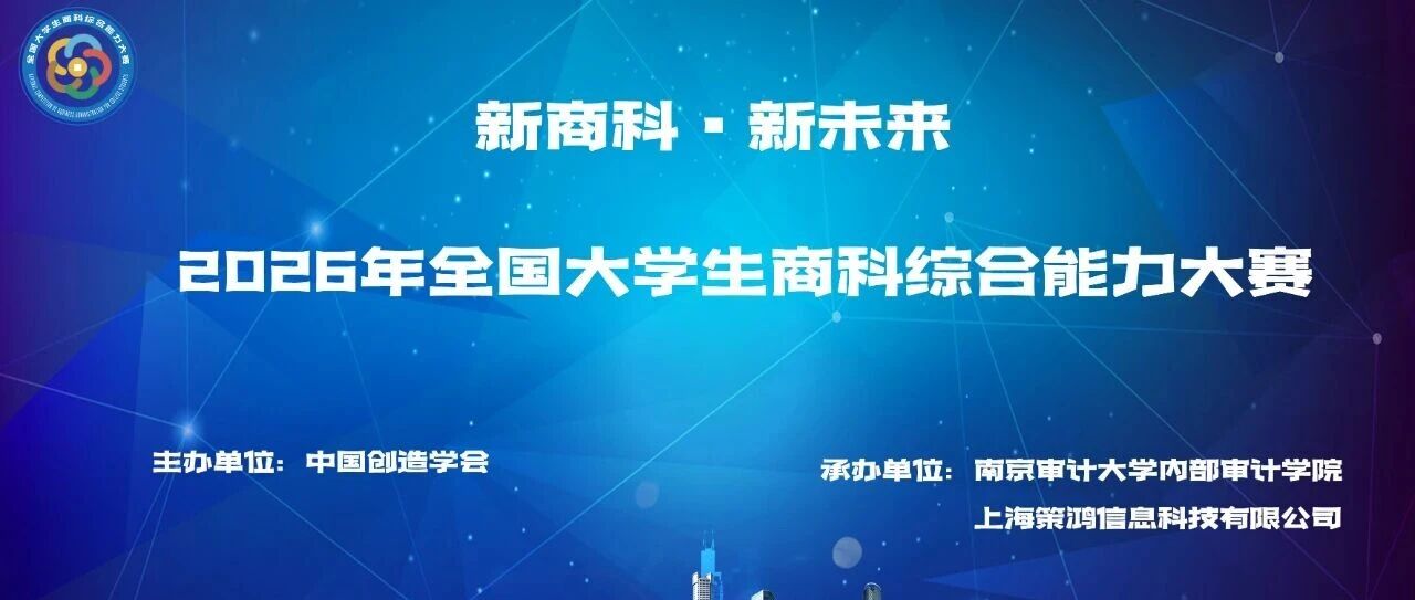 为贯彻落实中国中央、国务院印发的《教育强国建设规划纲要(2024-2035年)》(以下简称纲要)以及教育部《新文科建设宣言》和《教育信息化 2.0行动计划》文件精神,为全面落实教育规划纲要精神,推动各高校创新创业教育,探索新商科教学新模式,搭建一流的教学交流与共享平台。中国创造学会自2022年起,已连续举办5届“全国大学生商科综合能力大赛”(以下简称“大赛”),大赛通过以赛促学、以赛促教、赛教结合的方式共同促进各高校商科教学的改革与发展,进一步提升各院校的商科教学水平和新商科人才培养质量,提高参赛同学创新、创业、创造能力,为高校毕业生成长、成才,成功就业提供帮助。经我会研究决定,继续举办2026年全国大学生商科综合能力大赛。