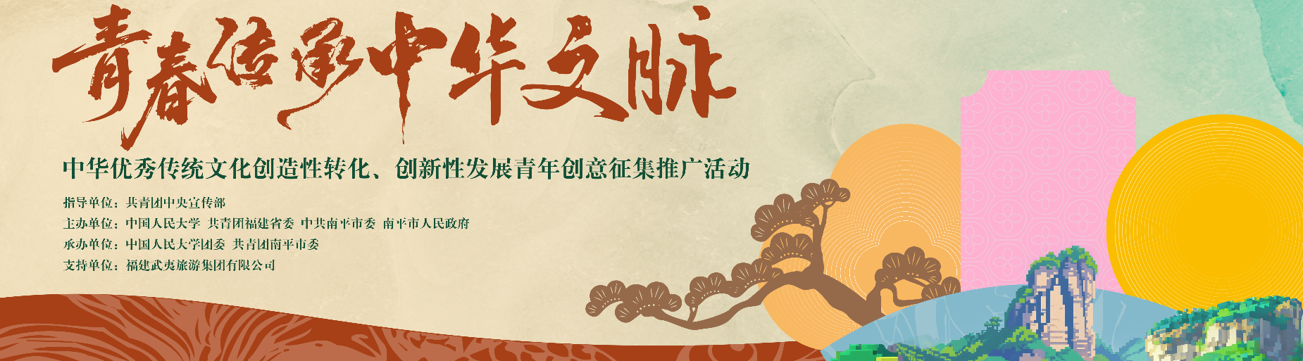 为深入学习贯彻习近平文化思想和习近平总书记关于青年工作的重要思想,引领青年深刻理解和把握“第二个结合”,发挥青年创新创造活力,结合高校知识人才和地方经济社会资源,推动中华优秀传统文化创造性转化与创新性发展,在共青团中央宣传部指导下,中国人民大学、共青团福建省委、中共南平市委、南平市人民政府举办“青春传承中华文脉”中华优秀传统文化创造性转化、创新性发展青年创意征集推广活动(以下简称青年创意征集推广活动)。