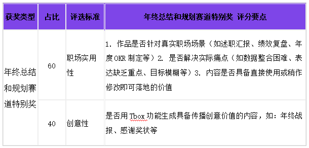 11.本次活动获奖名额限【585】名,其中爆款案例奖限额5名,优秀案例奖限额300名,Tbox分享官限额100名,征文奖励限额100名,年终总结和规划赛道特别奖限额80名。最终实际获奖数量以评选结果为准。