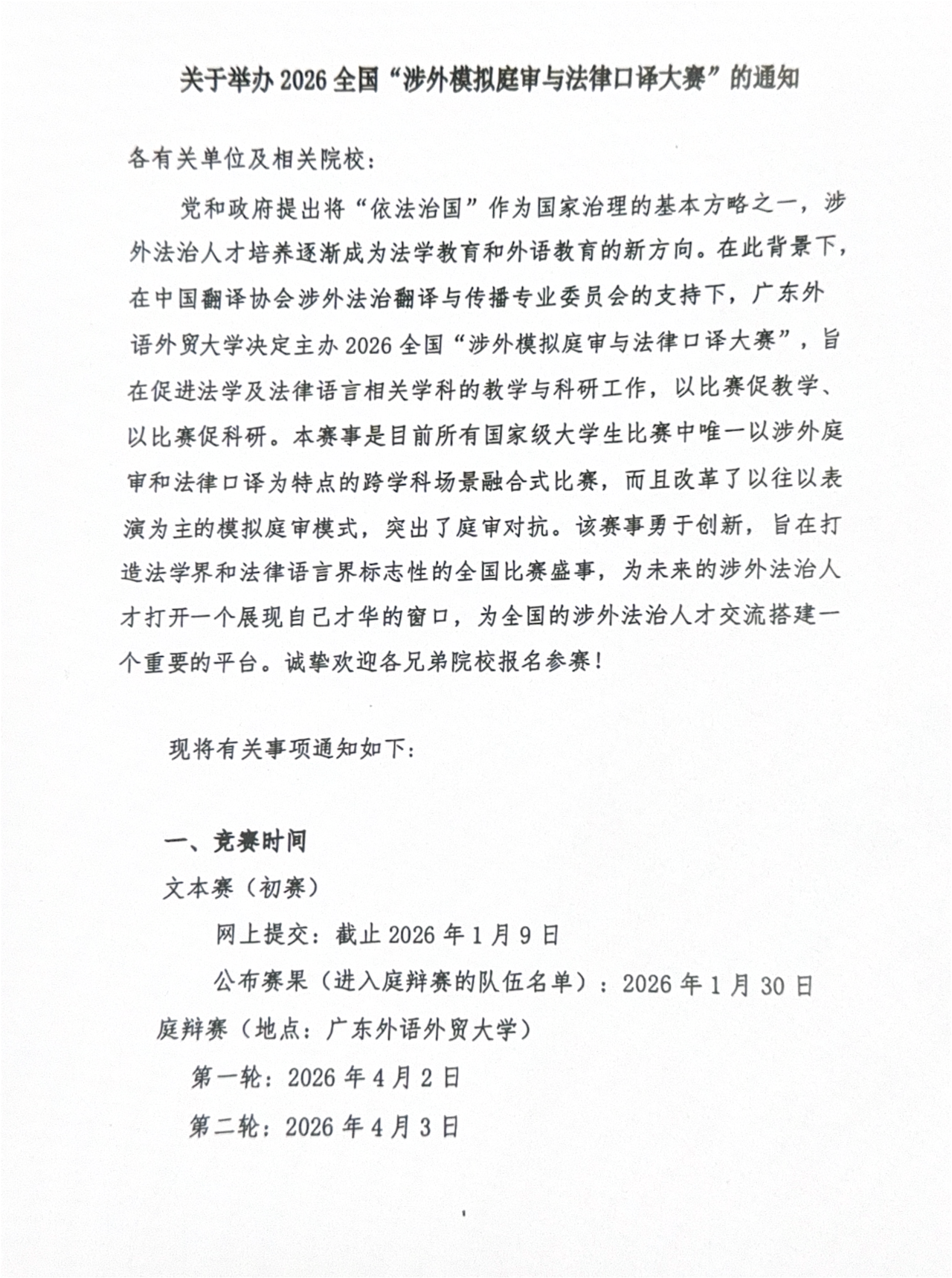 2026全国涉外模拟庭审与法律口译大赛