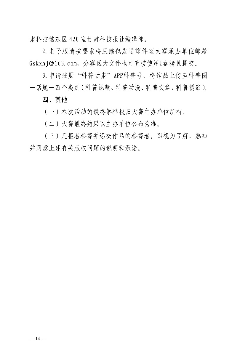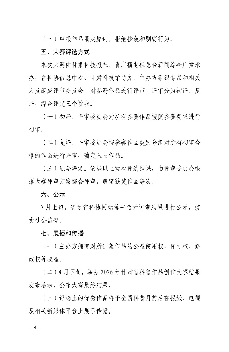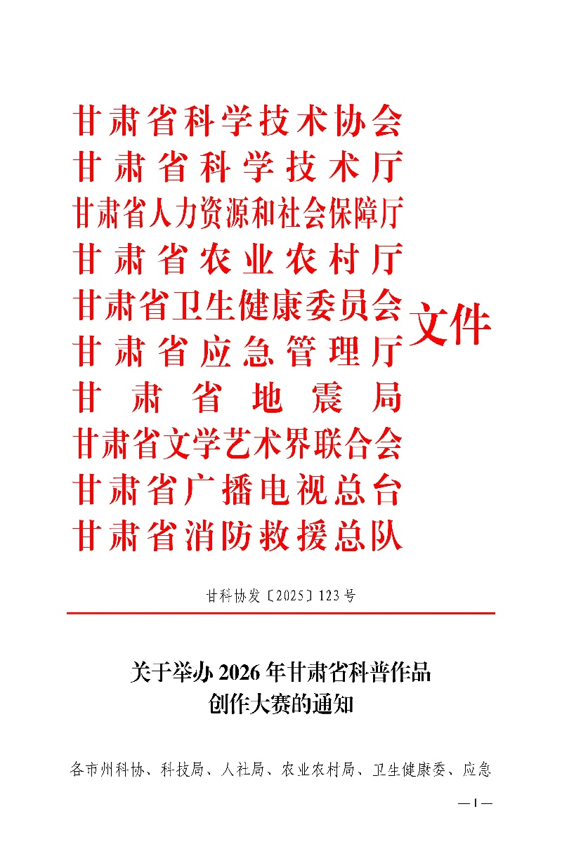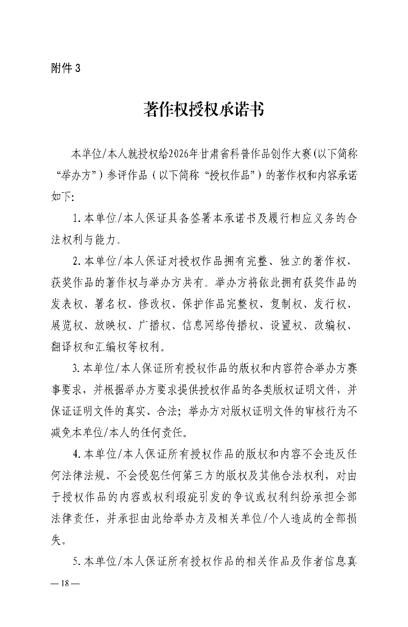 作品申报截止日期:2026年4月30日 附件2-1:2026年甘肃省科普作品创作大赛申报书(单位).docx 附件2-2:2026年甘肃省科普作品创作大赛申报书(团队).docx 本文信息搜集整理自互联网,信息版权及活动解释权归主办单位所有,我爱竞赛网仅作媒体支持。 请仔细看正文,正文里有报名办法,或者报名官网。