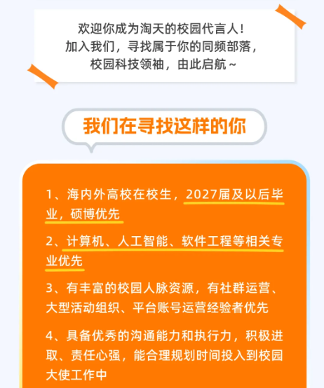 摘要: 淘天集团2026全球校园大使招募正式启动!