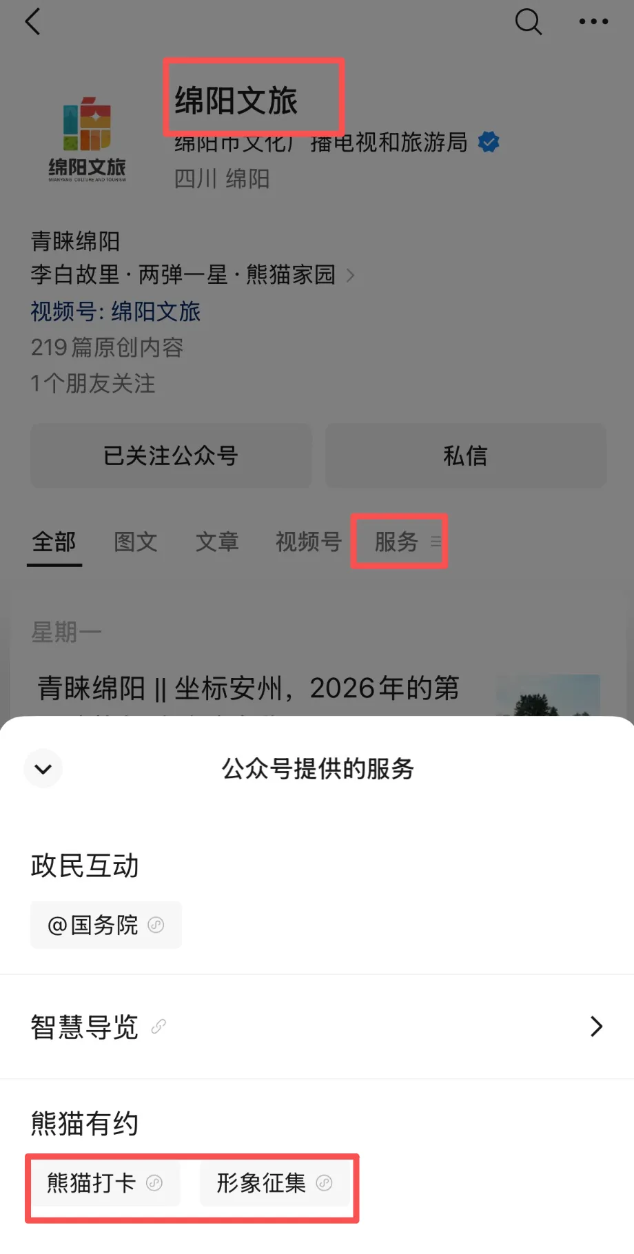 微信搜索“绵阳文旅”微信公众号,点开“熊猫有约”选择“熊猫地图打卡”活动,定位打卡上传合影或短视频即可。