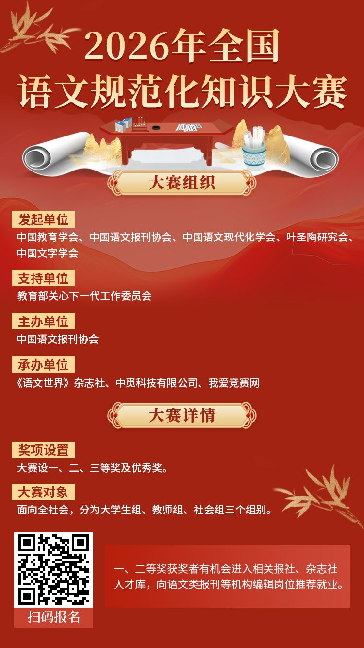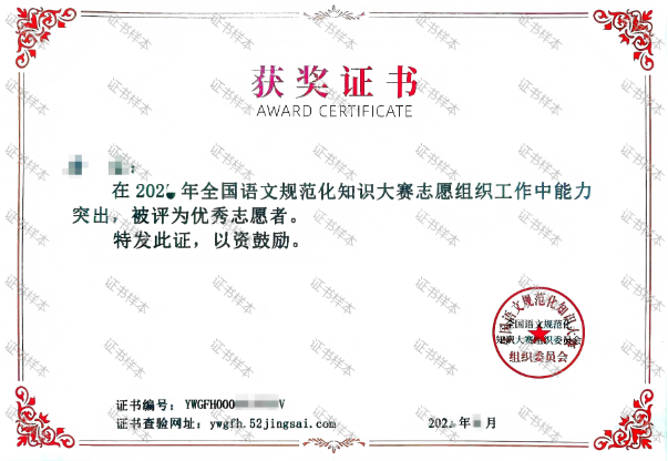 2026年全国语文规范化知识大赛 征集时间:即日起至10月28日 扫码进入官网 一、征集对象及要求: 各行各业工作者、学生、单位负责人等。 二、征集时间: 即日起至10月28日 三、志愿者工作: 1、配合大赛在线上、线下宣传工作; 2、使用专属宣传链接或海报在社交平台进行宣传推广,只有通过本人专属链接报名的参赛者方可有效记录。 四、志愿者奖项说明 1、用所给海报,编辑1篇大赛推荐图文或制作视频发布至抖音/小红书/知乎/B站等大型社交平台,并编辑不少于20字的推荐文案并带上话题 #全国语文规范化知识大赛 #大学生竞赛。 后台上传发文链接后,并至少保留1周,点赞量超过20个赞,审核通过后可申请【纸质版优秀志愿者证书】 (志愿者证书样本) 2、每一场报名截止后,成功组织3人以上报名参赛可获得一次免费答题的机会。(参与免费答题后可查询奖项,若需要纸质版证书,申请时再补缴40元考试技术服务、成绩复核、证书制作邮寄费用,自愿选择。) 3、每一场报名截止或全部报名截止后,成功组织5人以上报名参赛可获得【纸质版优秀志愿者证书】; 每一场报名截止或全部报名截止后,成功组织15人以上报名参赛可获得【纸质版优秀志愿者证书】以及VIP月卡任一张; 每一场报名截止或全部报名截止后,成功组织25人以上报名参赛可获得【纸质版优秀志愿者证书】以及便携保温杯一个; 每一场报名截止或全部报名截止后,成功组织普通场次50人以上报名参赛可获得【纸质版优秀志愿者证书】以及小马抱枕一个。 五、申请方式: 官网首页点击【参赛登录】在个人中心选择【志愿者】一栏,点击报名即可。 请仔细看正文,正文里有报名办法,或者报名官网。