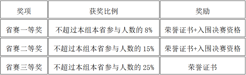 3.非协办院校参赛者,省赛一、二等奖获得者晋级全国决赛,协办院校本校参赛者,省赛一、二、三等奖获得者晋级全国决赛。