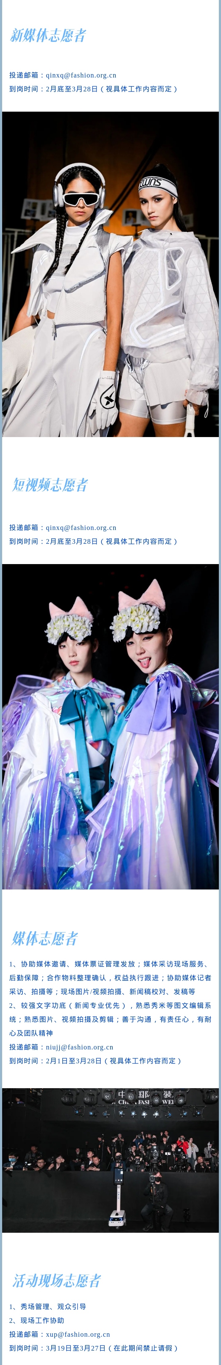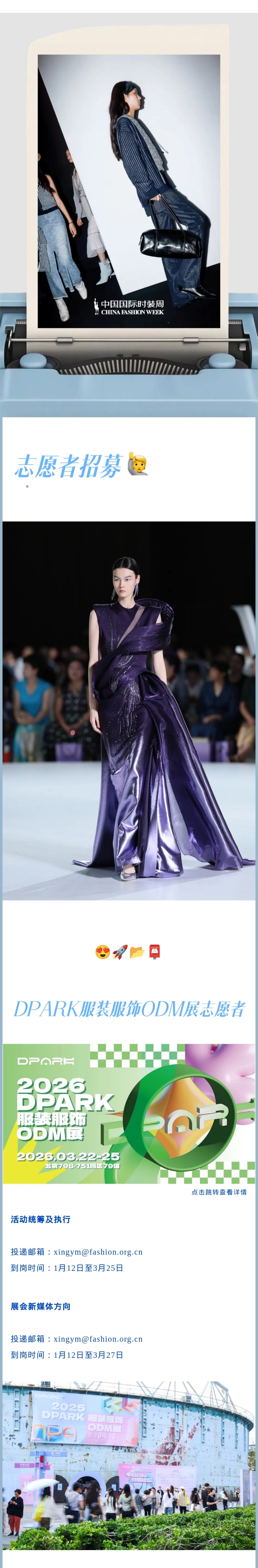 2026中国国际时装周(春季)志愿者招募 本文信息搜集整理自互联网,信息版权及活动解释权归主办单位所有,我爱竞赛网仅作媒体支持。 请仔细看正文,正文里有报名办法,或者报名官网。