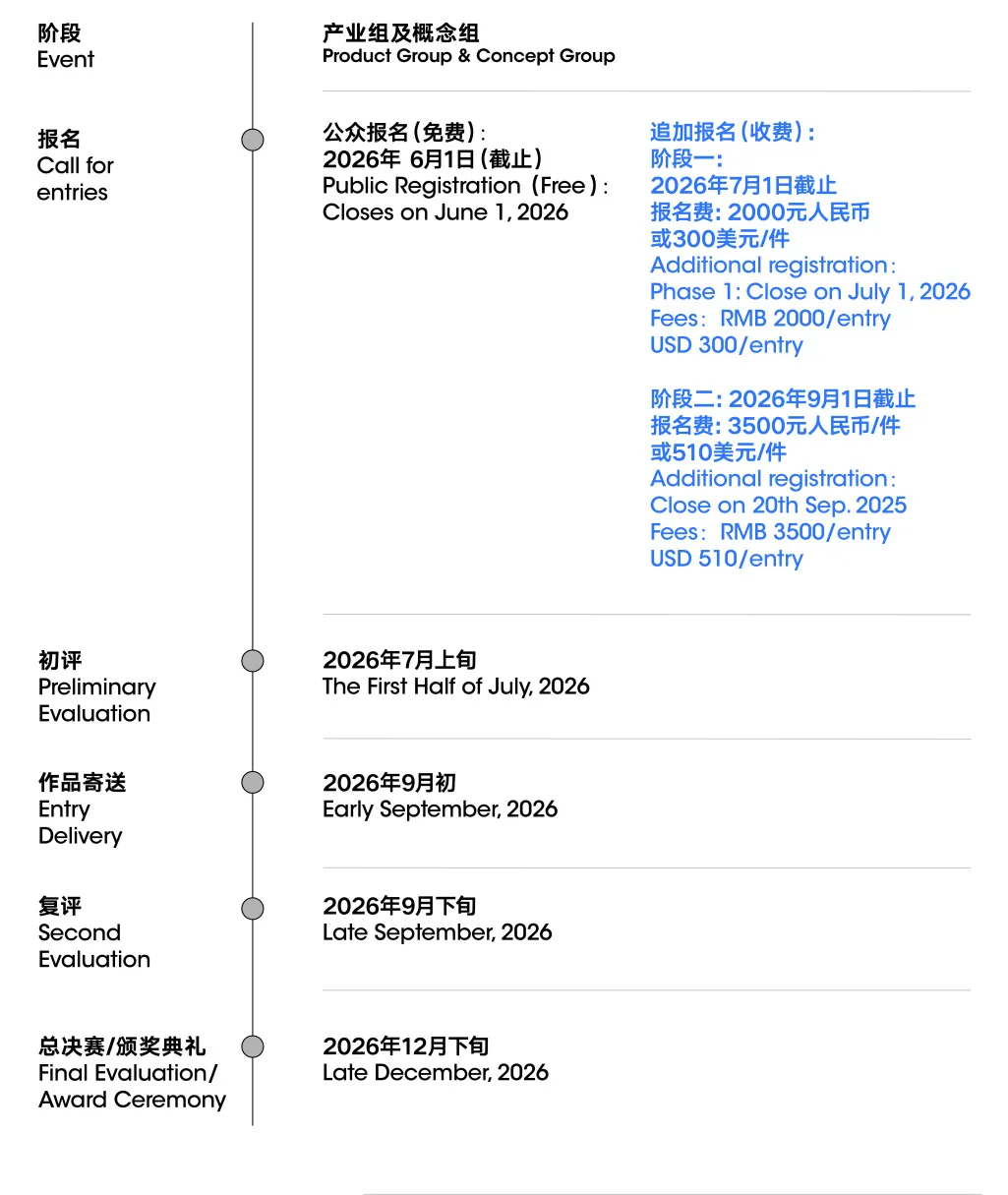 本次大奖免费报名于2026年6月1日24时(北京时间)截止,组委会鼓励所有选手于免费报名期间完成报名。对于错过免费报名期的参赛选手,组委会特设追加报名机会,并根据延期情况收取相应费用,用于与追加评审与组织费用。专家提名作品全程不收取费用。具体细则如下: