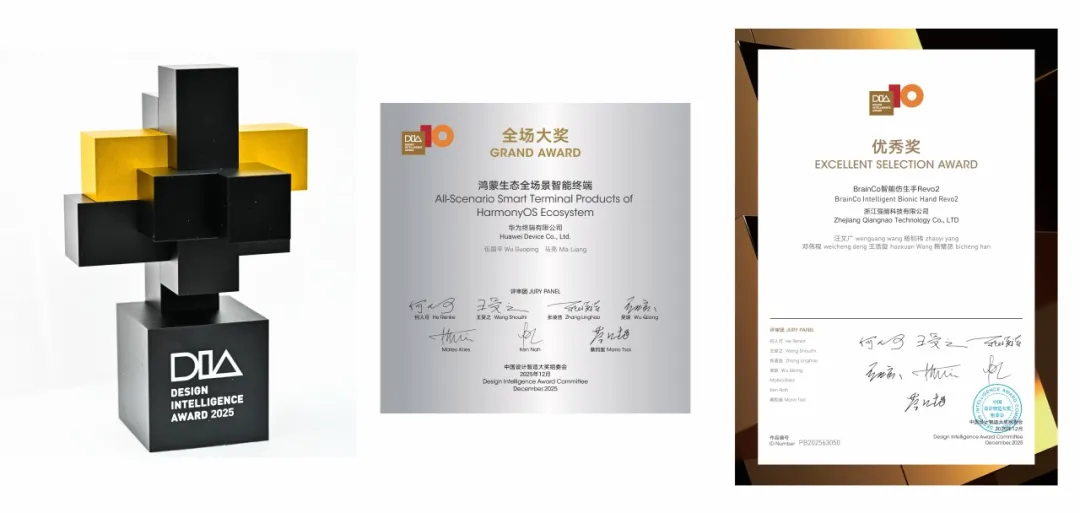 全场大奖为DIA年度最高荣誉,每年从当年度所有参赛作品中仅甄选一项,奖金100万元。该奖项旨在褒奖在设计、技术与产业融合中实现颠覆性突破或系统性集成的典范作品,以其开创性与引领性,开辟新赛道、定义新范式,塑造未来产业生态。