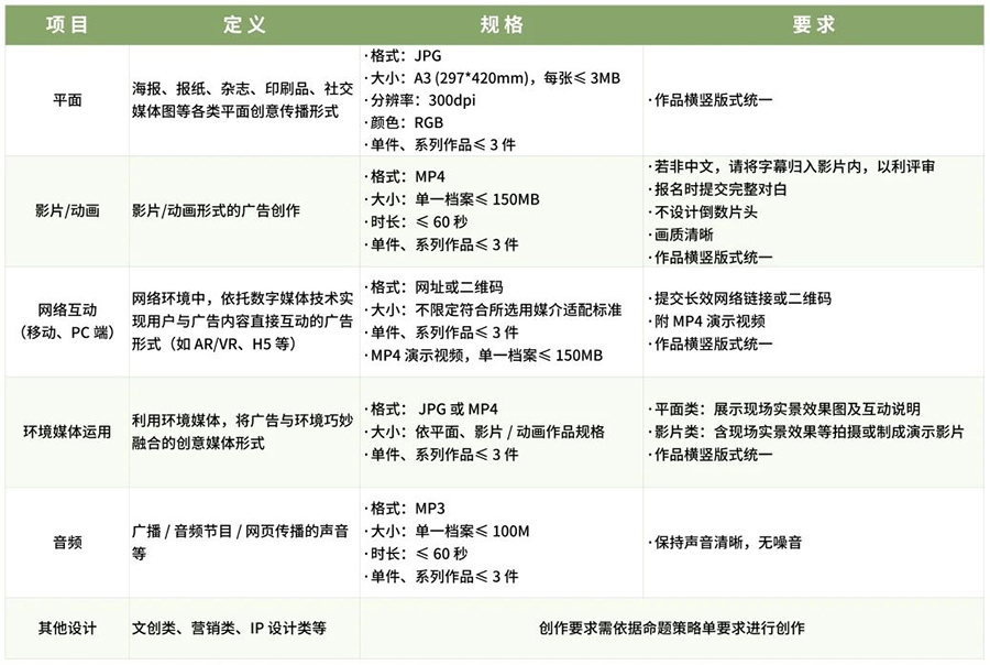 5、命题类作品除最佳执行技术类、跨界合作类之外,不可重复报名,不符合规定者不另行通知直接取消报名资格
