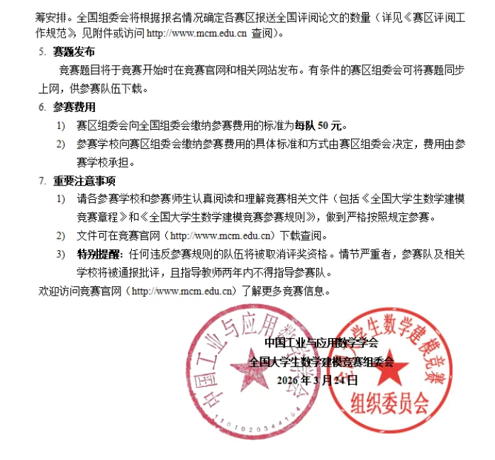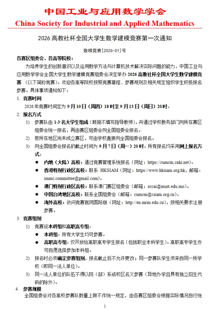 2026年高教社杯全国大学生数学建模竞赛 竞赛时间:9月10日18时至9月13日20时 点击下方卡片关注“大学生数学竞赛” 后台回复【高教社杯】获取往届赛题及优秀论文 本文信息搜集整理自互联网,信息版权及活动解释权归主办单位所有,我爱竞赛网仅作媒体支持。 请仔细看正文,正文里有报名办法,或者报名官网。