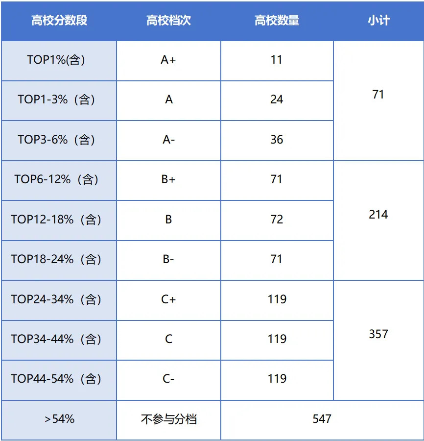高校分档规则