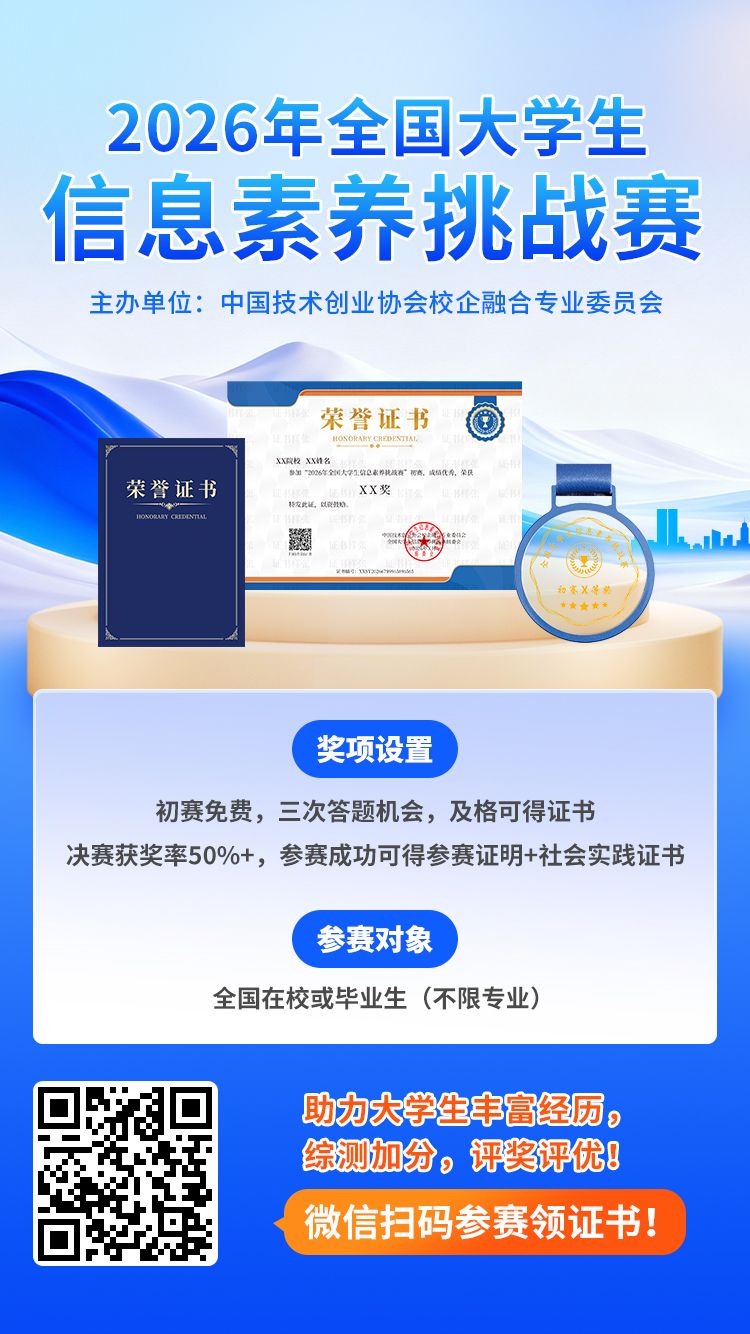 在数字时代浪潮下,信息素养已成为大学生成长与国家创新的关键能力。为响应党的二十大“推进教育数字化”的号召,落实《中国教育现代化2035》战略任务,本届大赛旨在激发大学生信息技术学习热情,助力教育数字化转型。现面向全国高校社团、老师申请协办单位,共同参与赛事组织与推广,携手推动信息素养教育发展!