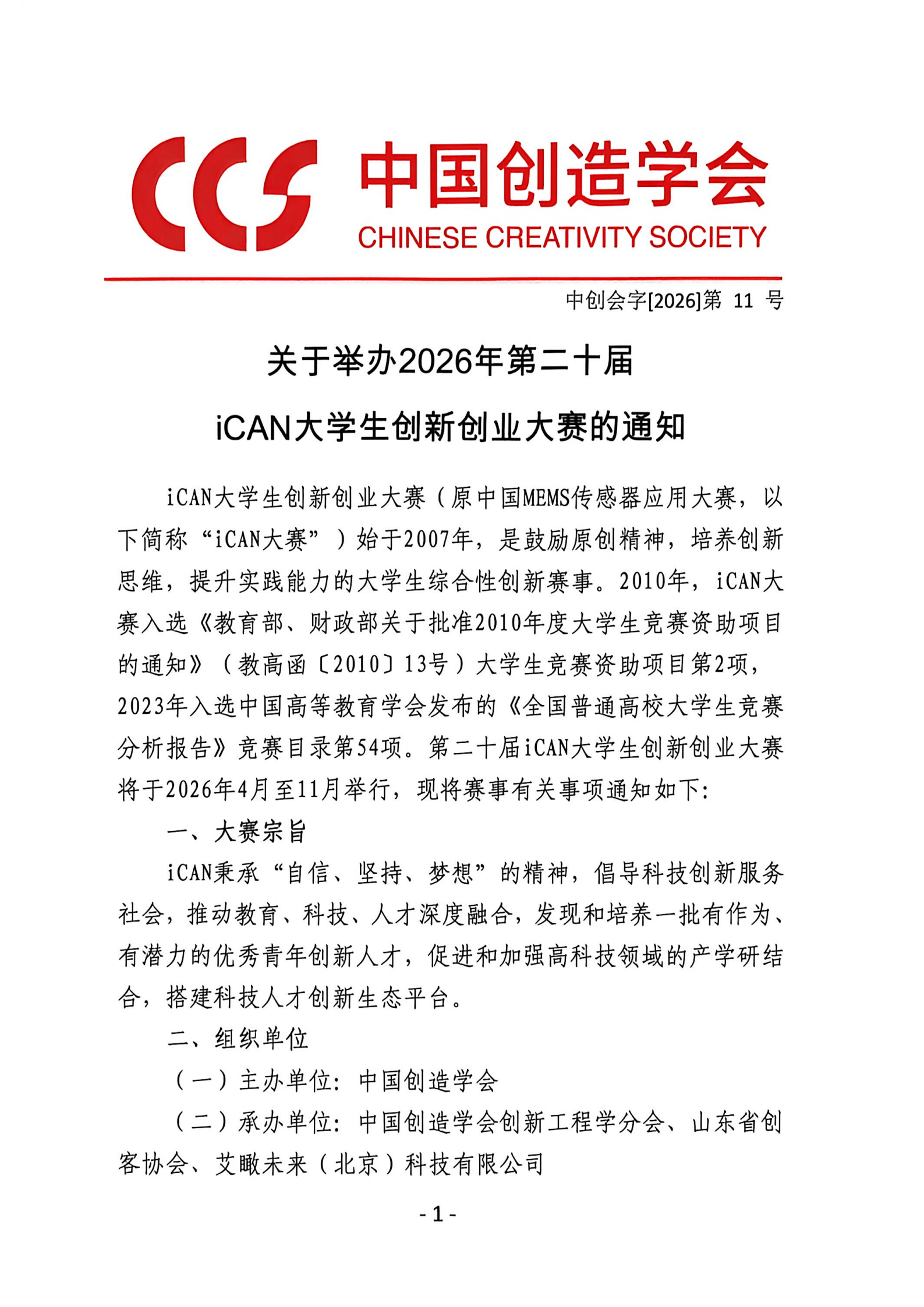 【榜单赛事】2026年第二十届iCAN大学生创新创业大赛