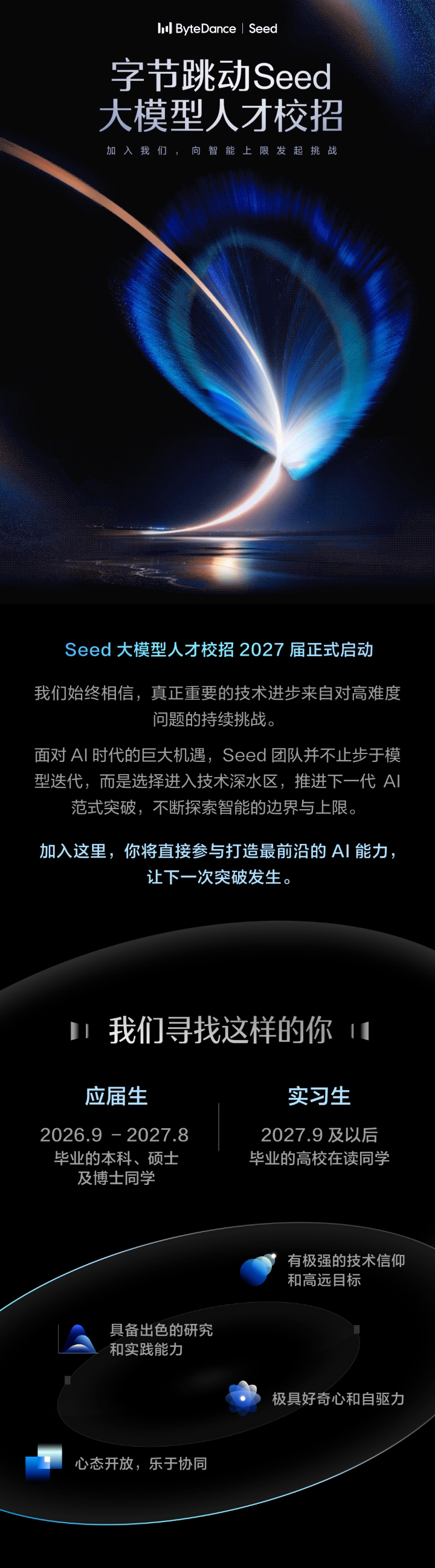字节跳动Seed2027 届大模型人才校招启动(含实习)